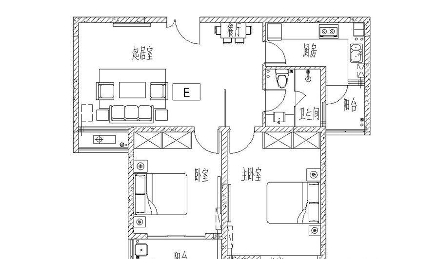2室2厅1卫-E户型102平