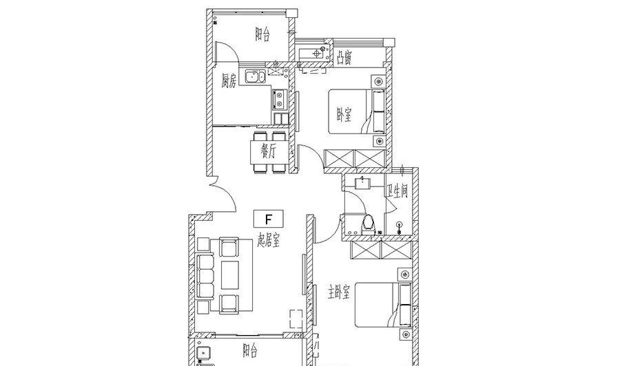 2室2厅1卫-F户型103平