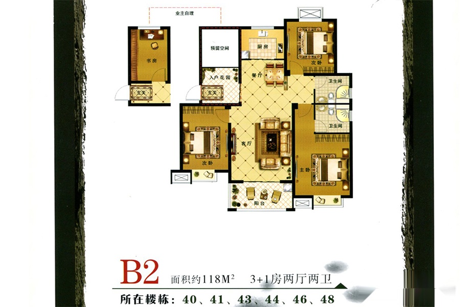 4室2厅2卫-40#41#43#44 B2户型118㎡