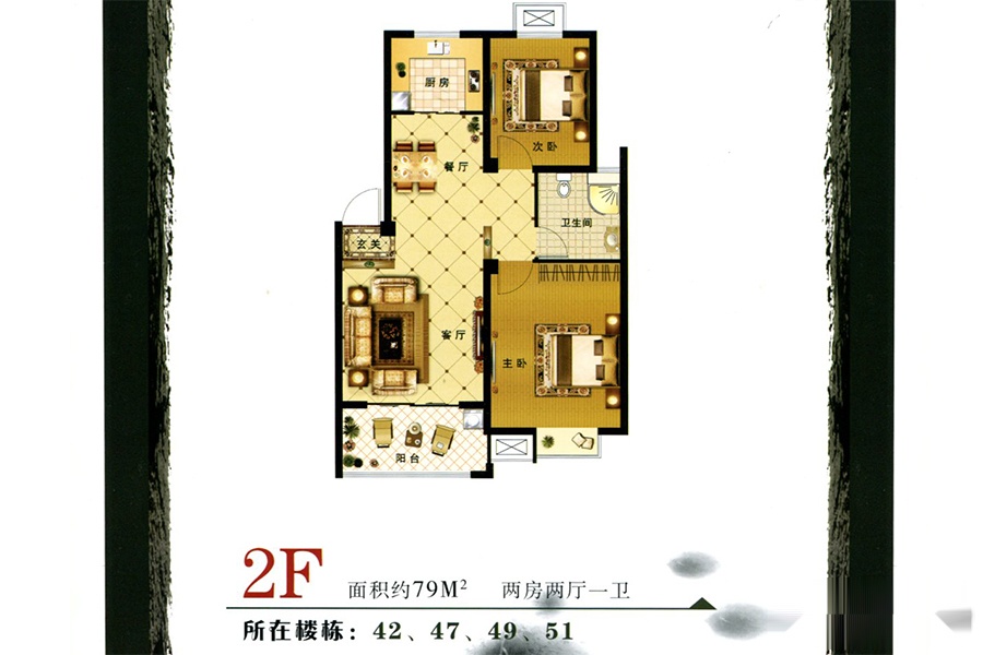 2室2厅1卫-42#47#49#51#2F户型79㎡