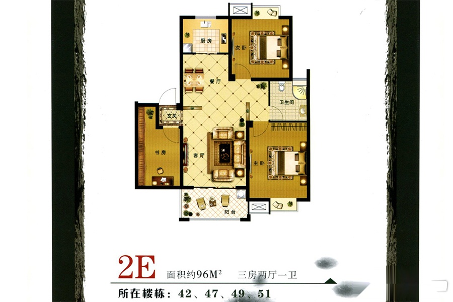 3室2厅1卫-42#47#49#51#2E户型96㎡