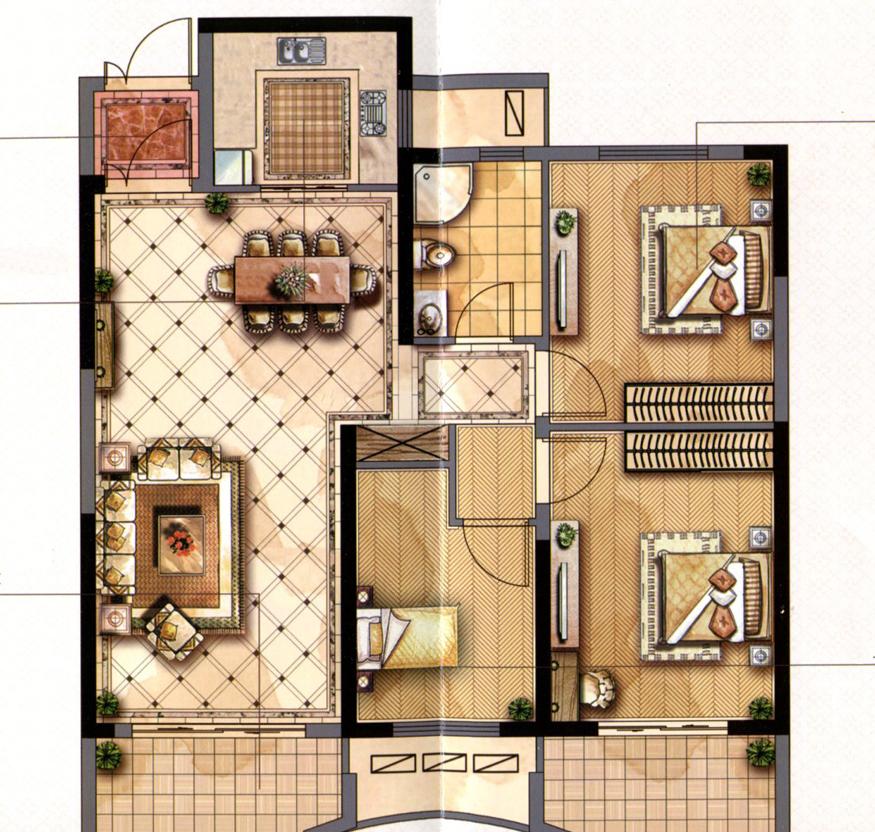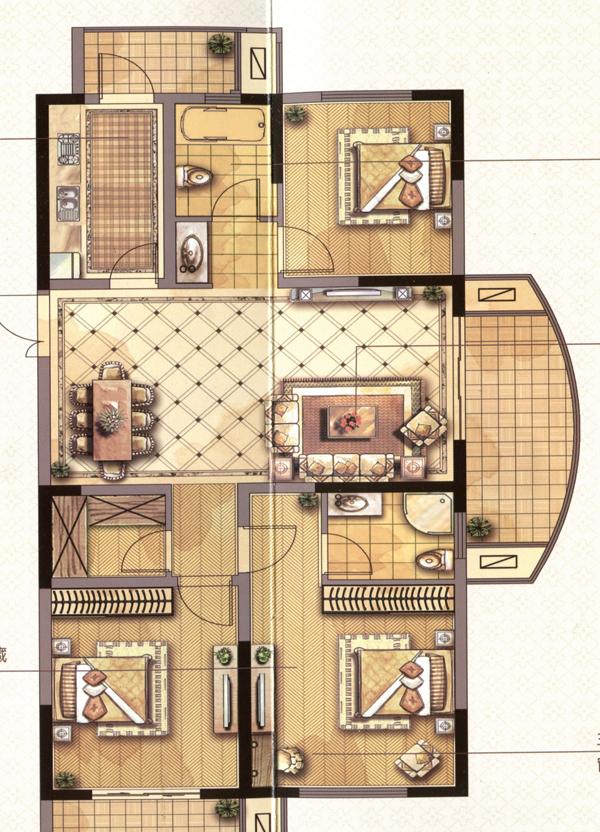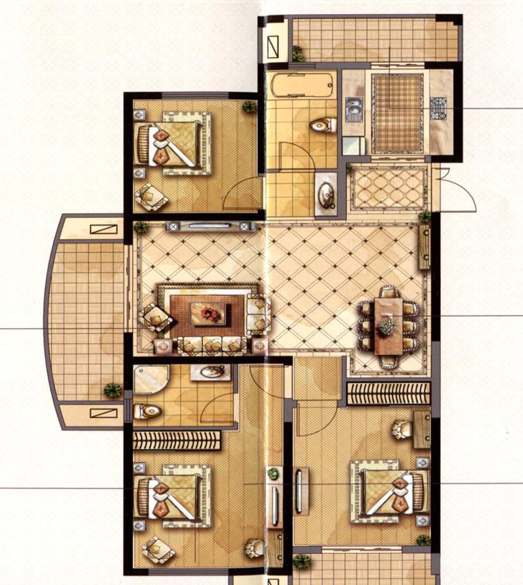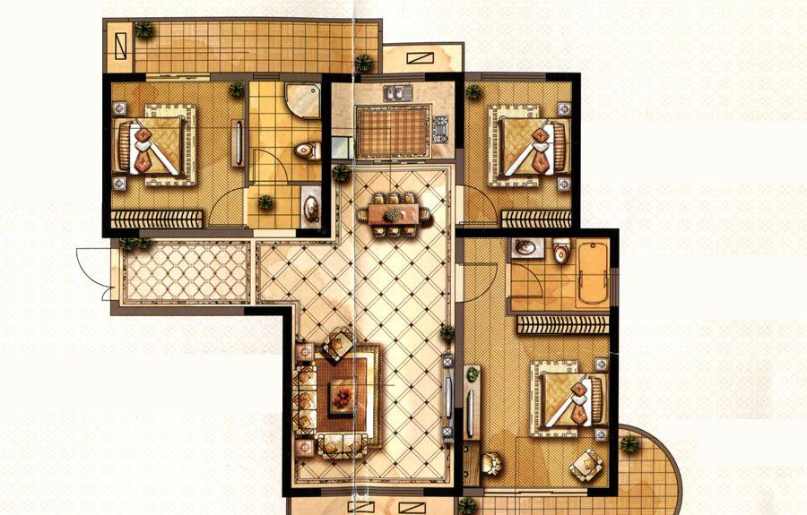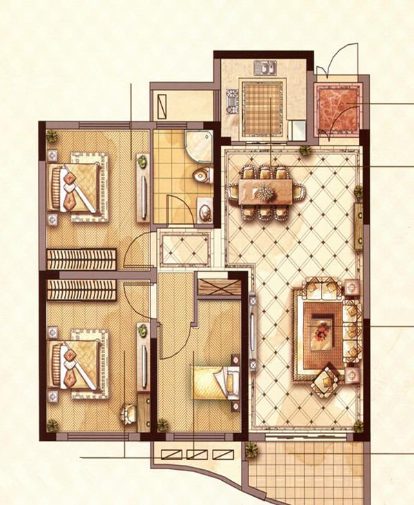 3室2厅2卫-骏景苑1、3号楼131平户型