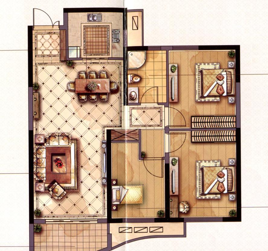 3室2厅1卫-骏景苑1、2、3号楼108平户型