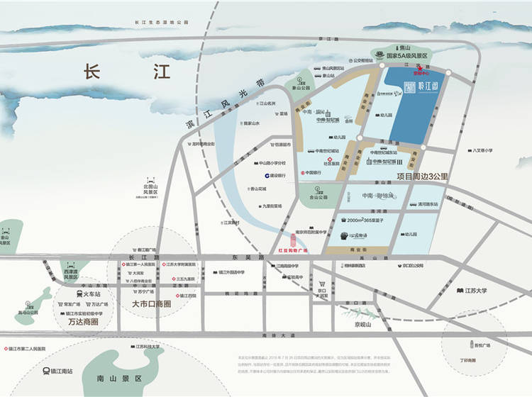 中南聆江阁项目位于镇江市京口区滨江板块,与长江一路之隔,距离5A级焦山风景区仅约500米,景观资源优质。项目交通四通八达,江滨路、焦山路两大城市主干道通达大市口。生活配套完善,中南约2万方商业配套,约2000㎡生鲜菜场、三大幼儿园、一大社区医院,满足日常生活所需。更有红豆购物广场、大市口商圈、江苏大学附属医院、镇江排名前列人民医院等主城资源。属于板块内少有低密度洋房社区,专为镇江高净值人群打造。