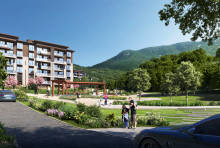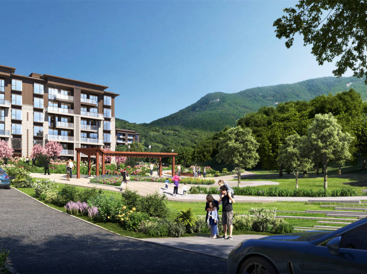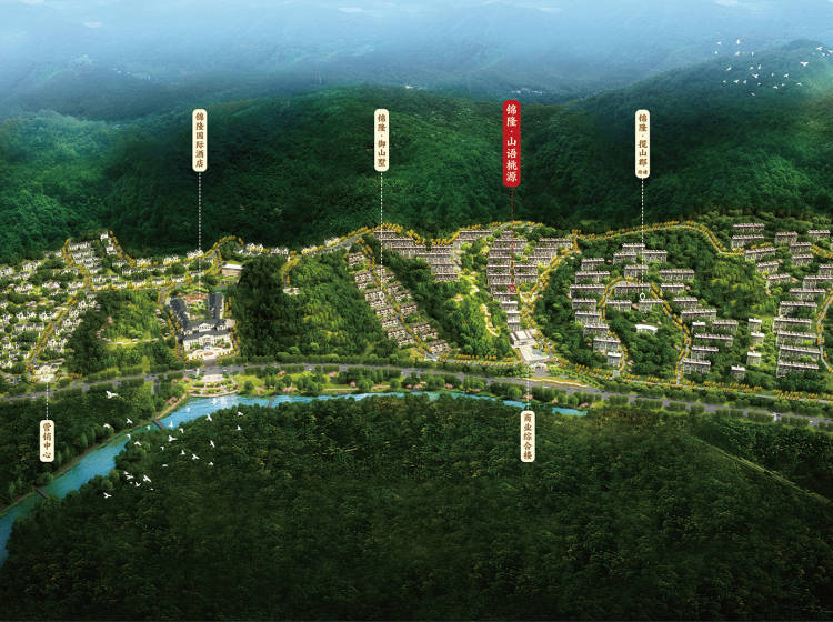 项目依托原生坡地地貌造景建墅,追求自然纯朴,将景观打造成建筑最靓丽的外表,形成回归自然舒适的较佳景观效果。项目整体占地1200亩,其中建设用地约800亩,总容积率仅0.34。分五期开发,目前在售的是三期锦隆·山语桃源。三期产品设计汲取了新亚洲建筑风格的精髓,以尊重原生态的设计语言表达情感与个性,将内部建筑与外部景观巧妙相连,形成风格别具的低密度住宅。