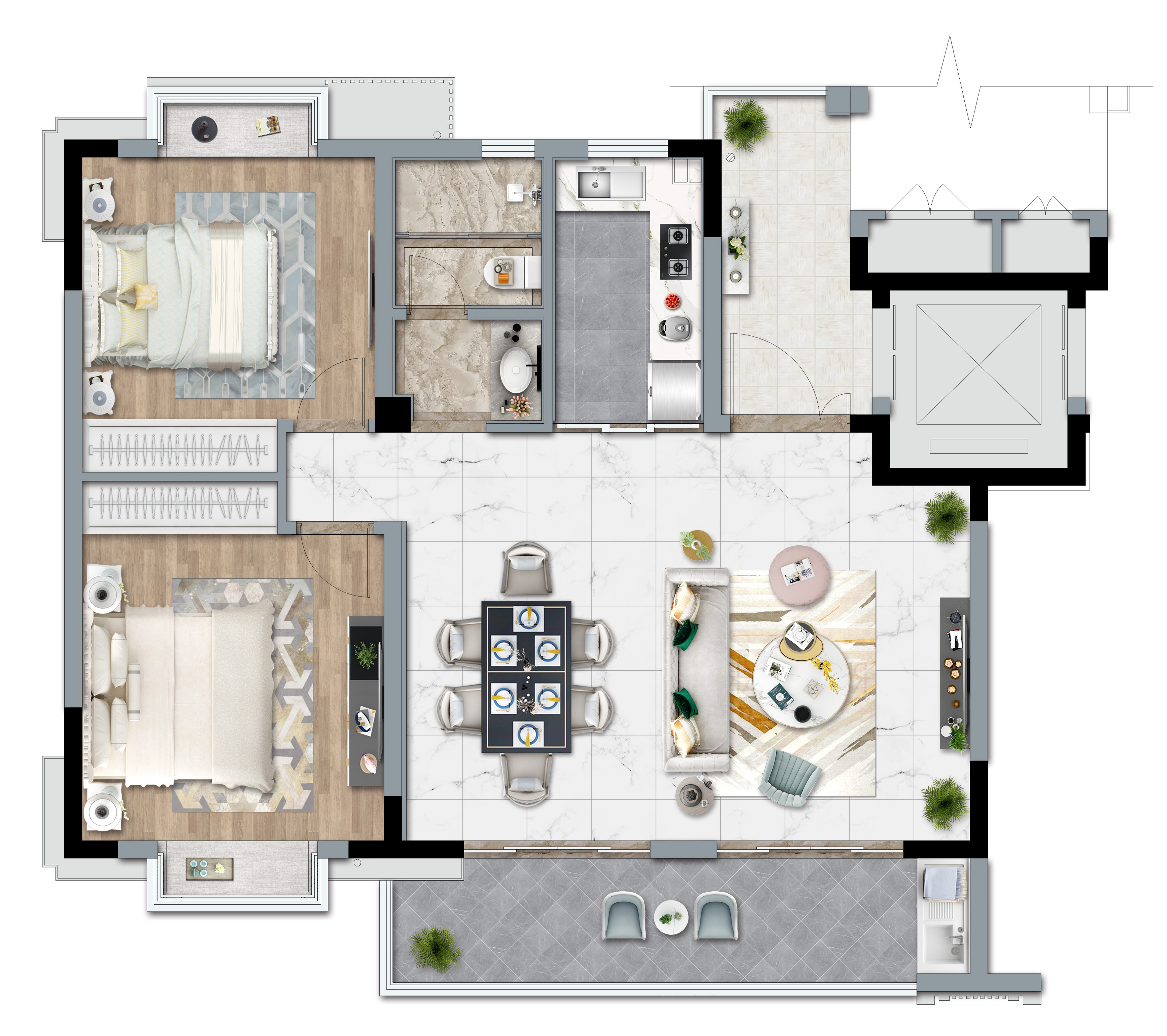 三期占地面积约6万方,总建筑面积约11万㎡,分BC两个地块,共27栋,其中1栋为商业综合楼,其余26栋为住宅,三期的主要产品为叠院和花园洋房,6-12#楼、15-23#、25-31#为叠院,叠院总楼层为6层,分上中下叠,户型面积约160-199 ㎡,其中23、25#为4层叠院住宅,2、3、5#楼为花园洋房,洋房主力面积为90-133㎡ ;