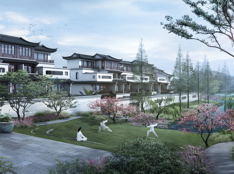 小镇拥有得天独厚的自然环境,背山面湖,享有福地之心的天赋之运、小镇配套先行,融合了温泉入户、天地院落等人居理想元素、项目项目总占地面积750亩,其中住宅占地约105亩,地上建筑面积约为6.9万㎡,小镇主要以建筑面积约118-320㎡精装的中式叠院为基底、升级版创新产品做到每户独门独院的设计,上下叠均拥有地面精致庭院。较大庭院面积能达到2:1。