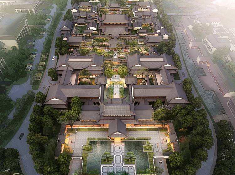由14.2万平方米的医养院墅和21.8万平方米包含类三甲医院、可持续照料养老机构、老年大学、慢生活商业水街、专家公寓、度假养生酒店、道文化养生公园等公共配套空间构成,整个项目自持比例超过50%