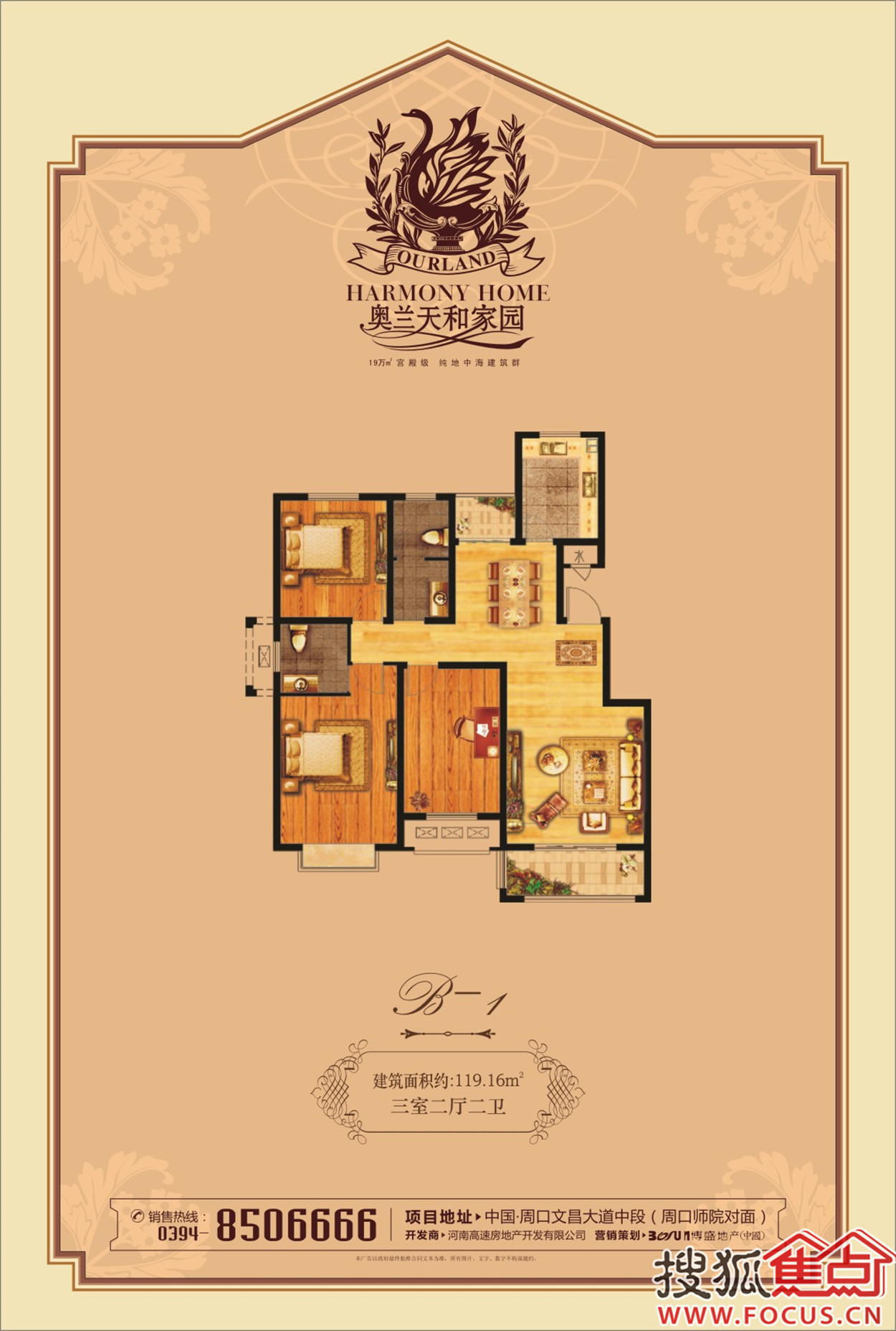 周口奥兰天和家园项目是河南高速房地产开发有限公司旗下的一个重点项目,位于周口东新区文昌大道南、庆丰街以北、东临公务员小区,西接拟建道路胜利街,总占地面积138.94亩,总建筑面积约19万平米,容积率仅为2.0。,分为3期开发。