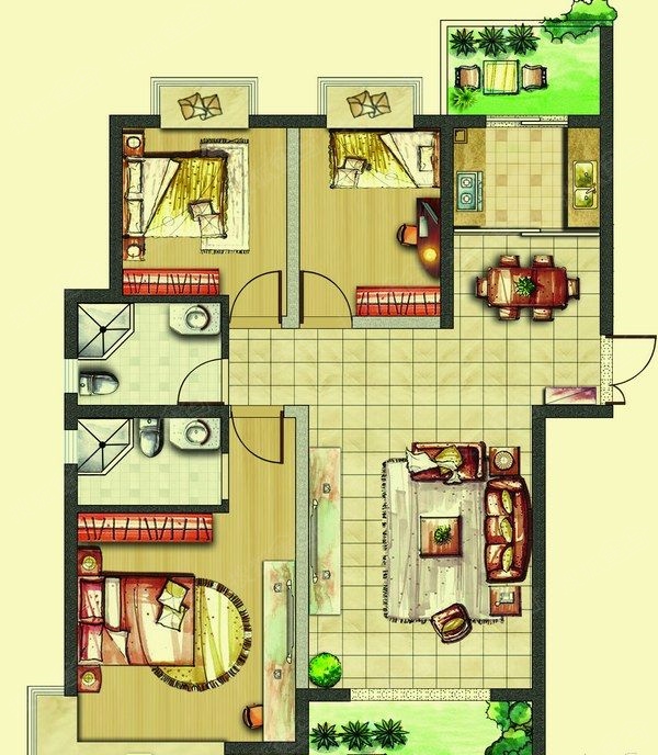 文昌新卷项目自西向东分为三个建筑组团“幸福花开”、“城市广场”、“金色东方”。