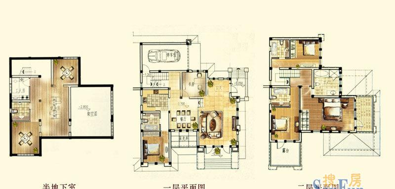 别墅带有地下车库。