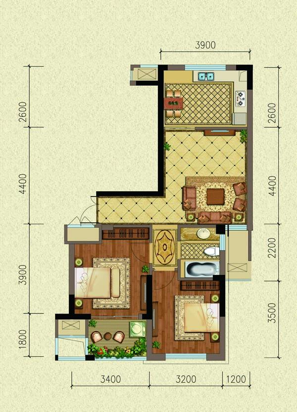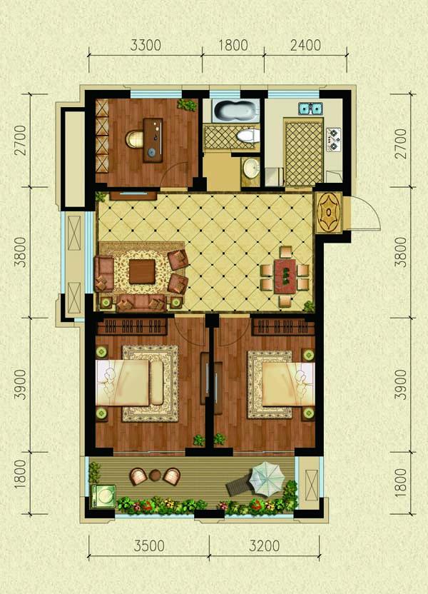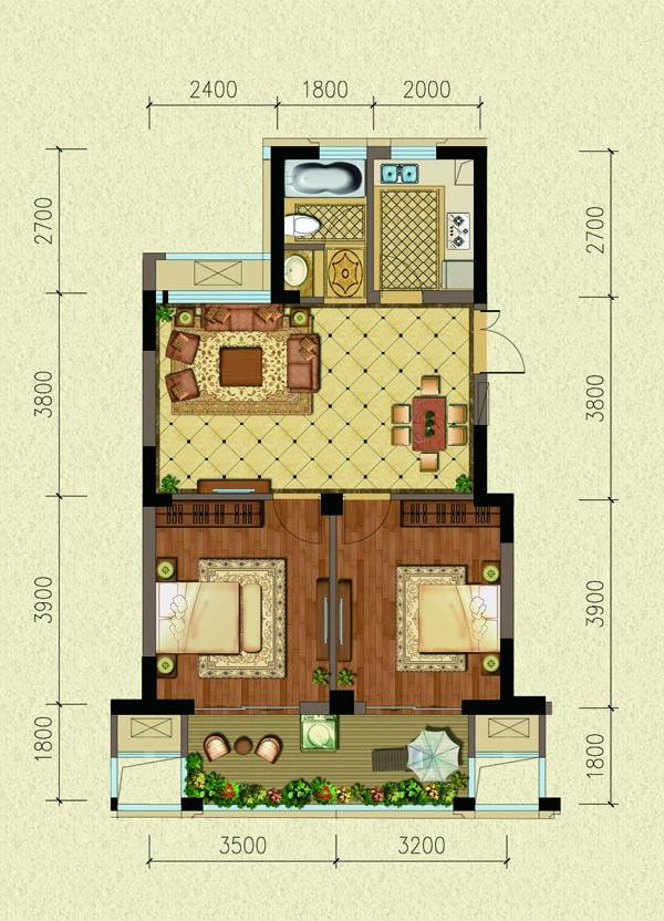 2室2厅1卫-A3-75㎡