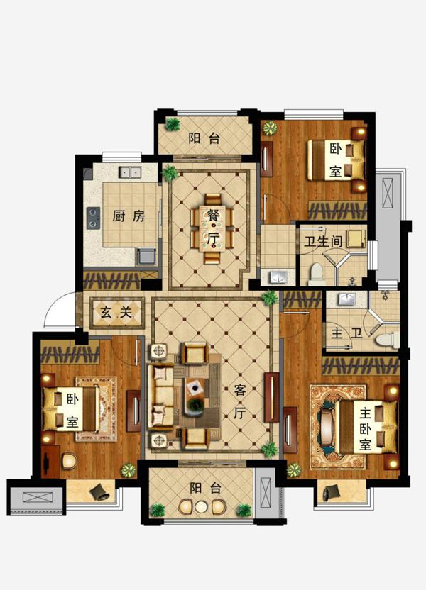 3室2厅2卫-c户型3室2厅2卫1厨122平