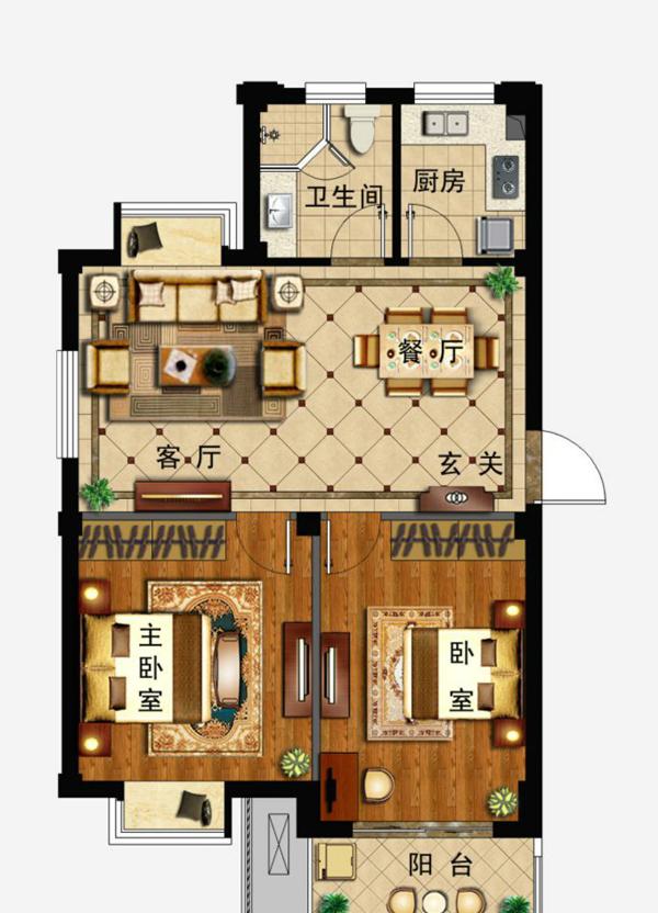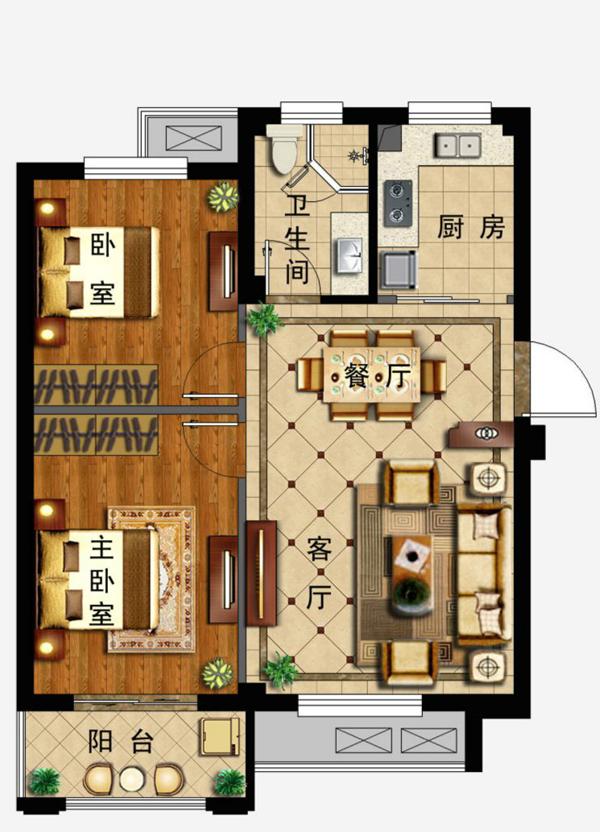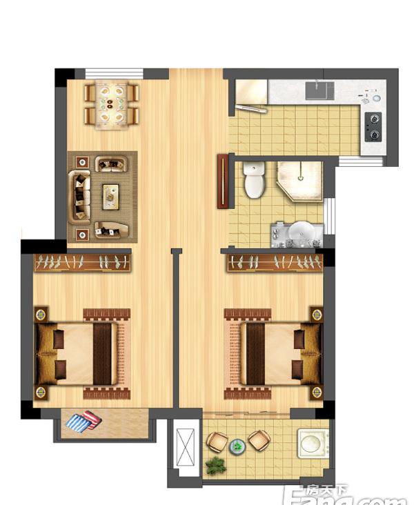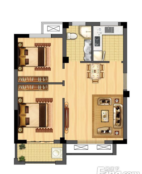 2室2厅1卫-f户型2室2厅1卫1厨62平