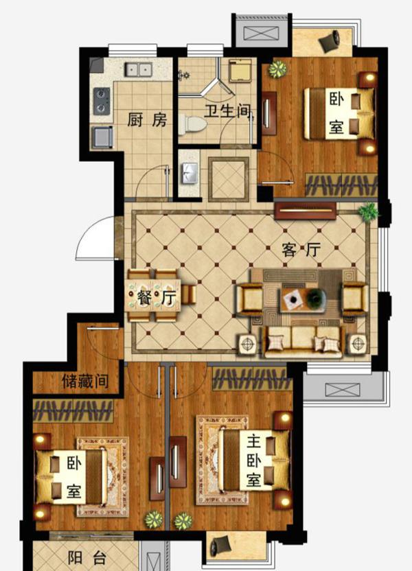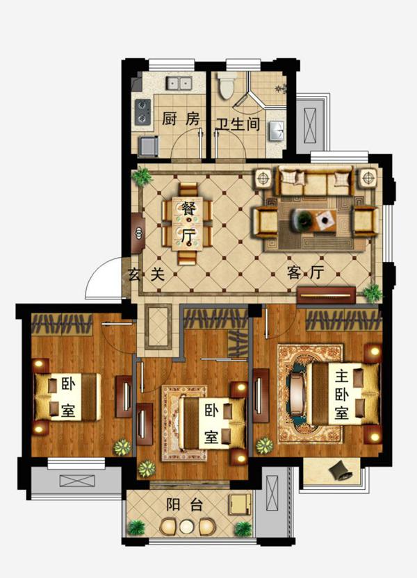 3室2厅1卫-d户型3室2厅1卫1厨107平
