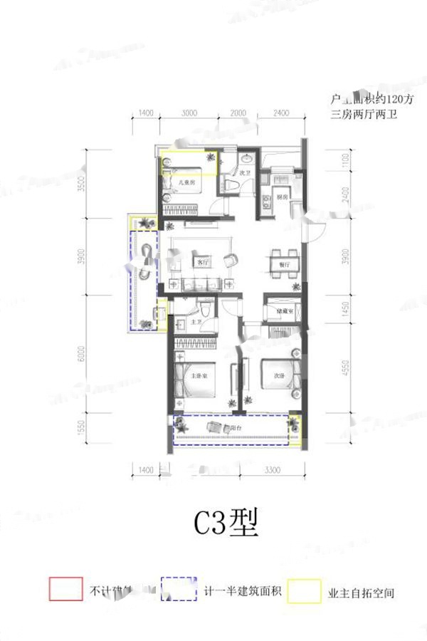 3室2厅2卫-C3户型-120㎡