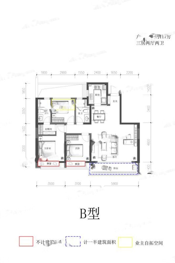 3室2厅2卫-B户型-117㎡