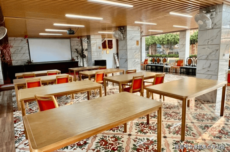 广州海珠区百丈颐养中心总建筑面积1.8万平方米,绿化覆盖率达35%,2000平方米的中央花园内设环形步道、适老化恒温泳池及鱼池花园,四季有花,绿意盎然,老人们可在此喂鱼赏花、散步休憩。园区全域采用无障碍设计,走廊宽度达1.8米,设置双层扶手,地面铺设防滑地胶,家具边角做圆角处理,最大限度降低跌倒风险。同时引入智能设备,毫米波雷达跌倒监测系统、智能手环、紧急呼叫系统覆盖全院,房间内配备电动护理床、智能温控设备,让适老化细节与智能化科技完美融合,守护长者居住安全与舒适。