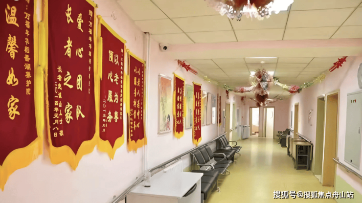 适老化设计:全院地面平整无高差,走廊加装扶手,提供助行器借用;