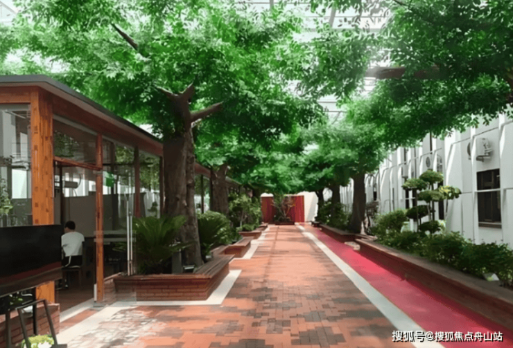 院内绿树成荫,建筑融合传统与现代元素,