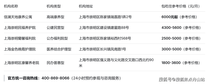 2026崇明区包吃住养老院价格一览,地址及机构类型汇总