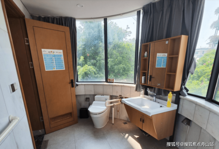居住空间:全屋采用无障碍设计,防滑地板、安全扶手、圆角家具、起夜地灯等细节降低跌倒风险;独立阳台与适老化卫浴配备恒温花洒、无障碍洗手池,解决南方潮湿问题;中央空调与紧急呼叫系统24小时运行,确保居住体验。