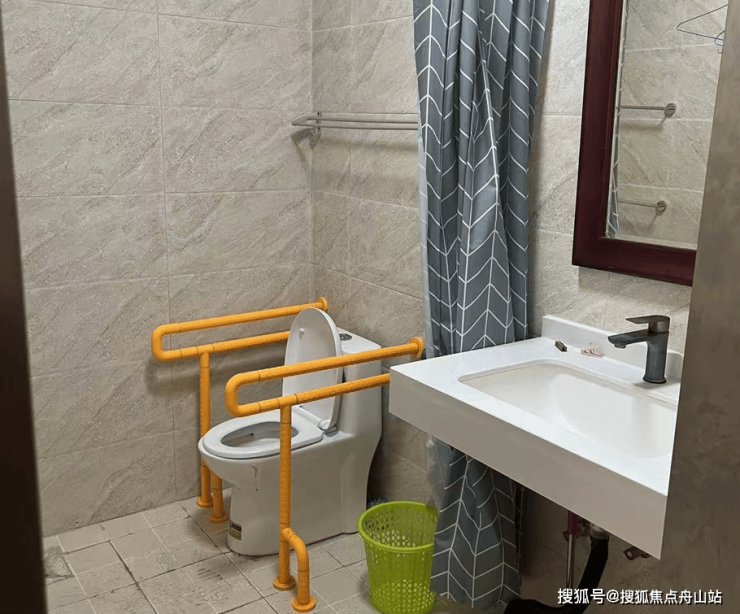 适老化安全设计: 房间内外安装扶手、配置防滑垫,护理床配备呼叫器,保障长者行动安全。