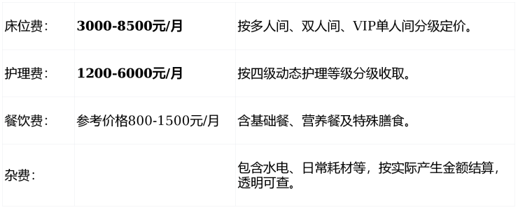 收住人群:自理长者、术后康复者、半失能/全失能老人、认知症患者、安宁疗护需求者