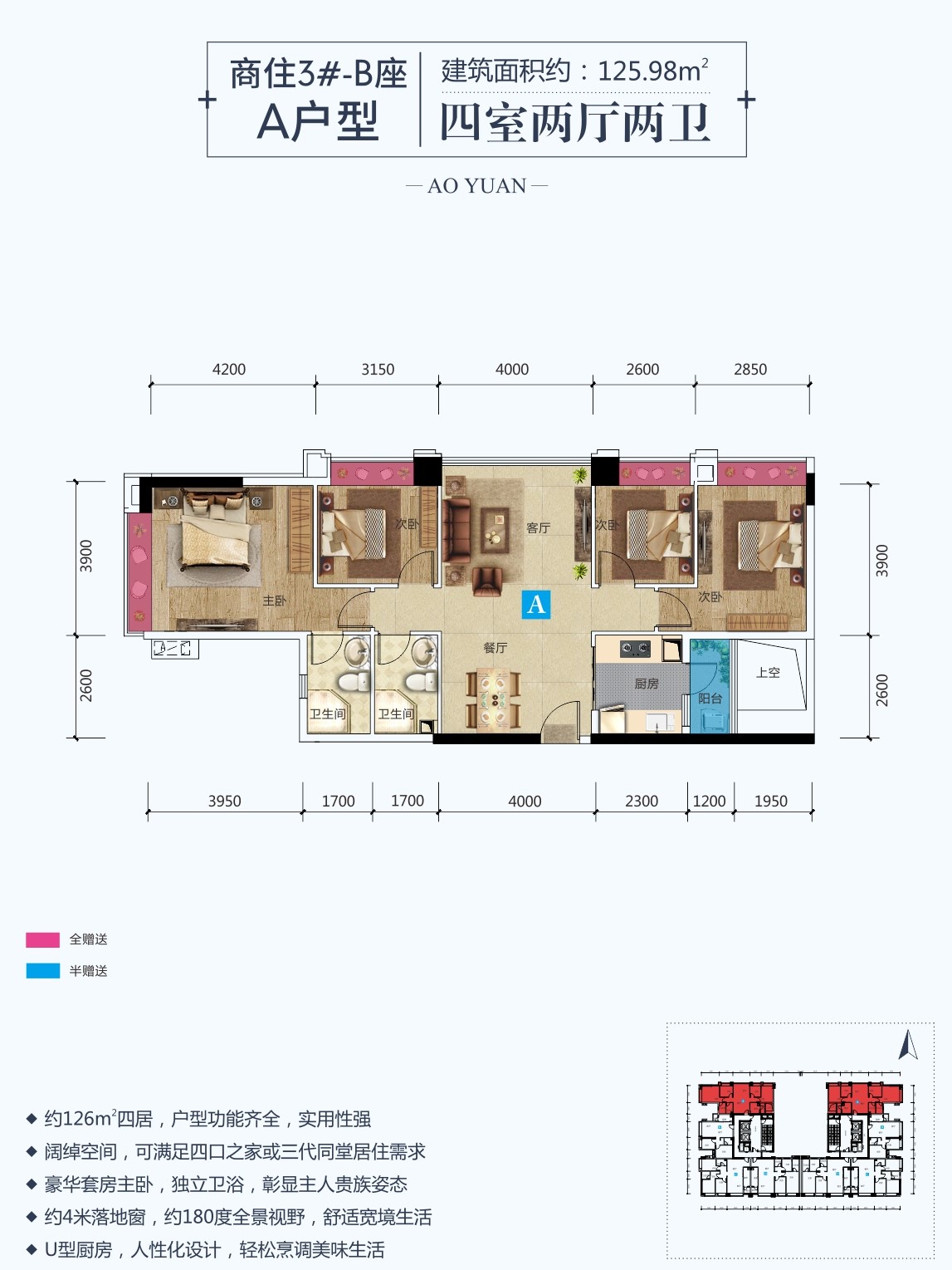 奥园广场二期城市之光商住3#B座,建面82~126m住宅精品。