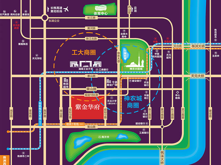 紧邻城市干道泰山路及衡山路,多路公交以此为中心,毗邻高铁西站、京珠高速,规划中的地铁1、3号线也将贯穿此区域