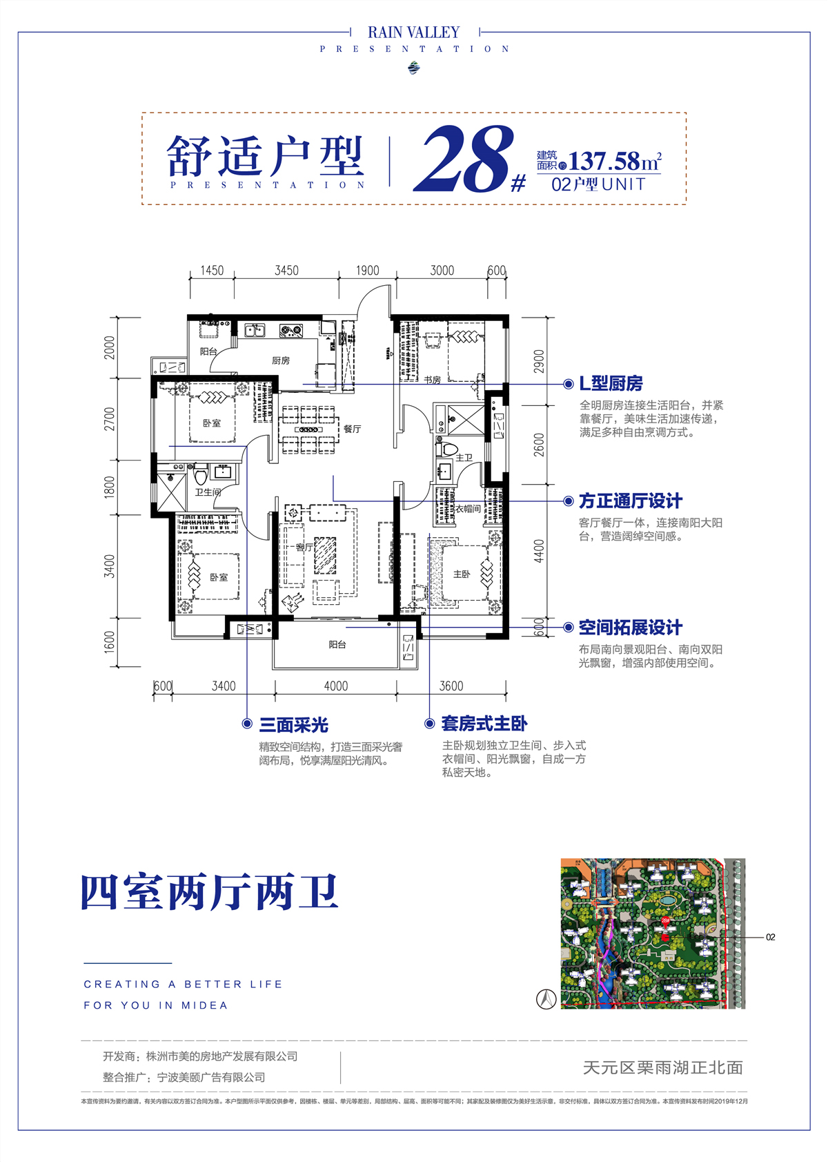 2014年美的置业全新力作——蓝溪谷,横空问世! 蓝溪谷作为美的置业2014年巨献株洲的大礼,品牌实力突显。 项目位于美的城以北、南邻栗雨湖,紧依株洲大道,是长株潭城市群发展的桥头堡。项目拥有三大水景,南面正对栗雨湖,项目中央1公里活水水轴、项目北面正对湘江,是整个株洲的水景大盘。 美的置业深耕株洲十年,量身为株洲人民打造人居——蓝溪谷。项目户型全部正南正北,斥资2亿元打造15万平方的活水系园林,蓝溪谷的每一个细节都是彰显株洲美的地产对于株洲人居的思考。同时,103~140平米百变户型,为株洲人民提供更多的选择。