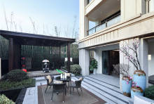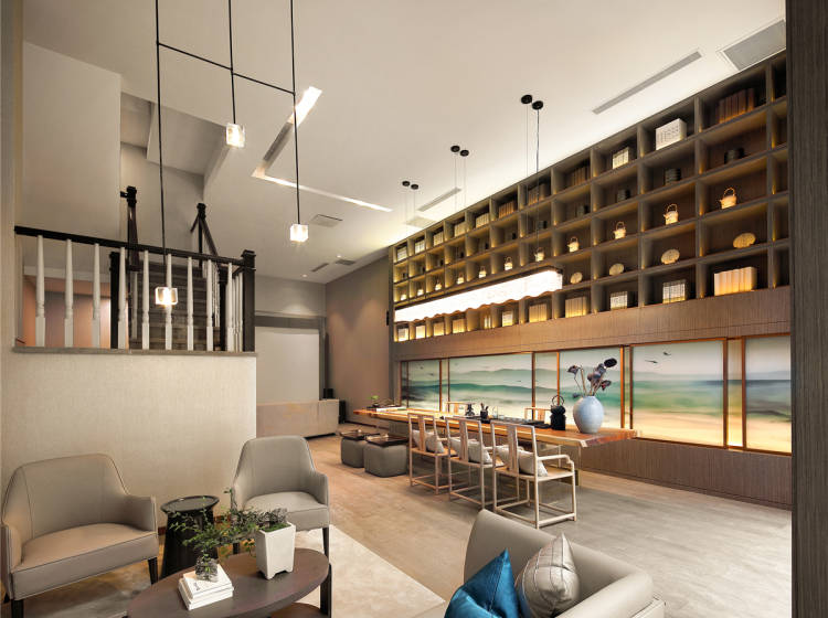 建筑风格采用当下豪宅项目的主流设计风格——新中式风格,独有的五重归家礼序,宽18米中式府门、迎宾树仗、中央园林景观会客厅、入户花园、入户大堂,五重立体园林,打造南区新中式品质大盘!