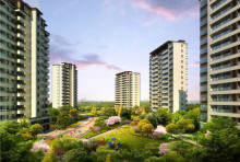 约225亩新中式品质墅区,绿地率高达30%,容积率仅1.5,规划有花园叠墅、亲地洋房、墅境小高层三大产品系,打造新中式主题园林,中轴对称五重归家礼序,配备建面约12000㎡新中式园林景观、建面约400㎡游泳池、约700m慢跑道,形成全龄交互区、老人、儿童活动空间,满足三代人的活动需要。