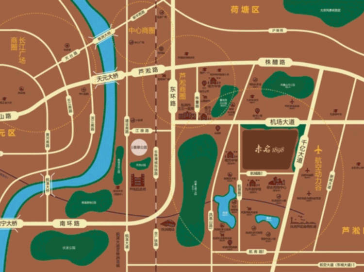 b、区域价值:未名1898位于千亿大道与机场大道交汇处,地处航空城——株洲“动力谷”城市战略发展的核芯。一山两湖自然资源,隔绝城市喧嚣,三横两纵立体交通路网,加速城市未来生活,繁华触手可及;