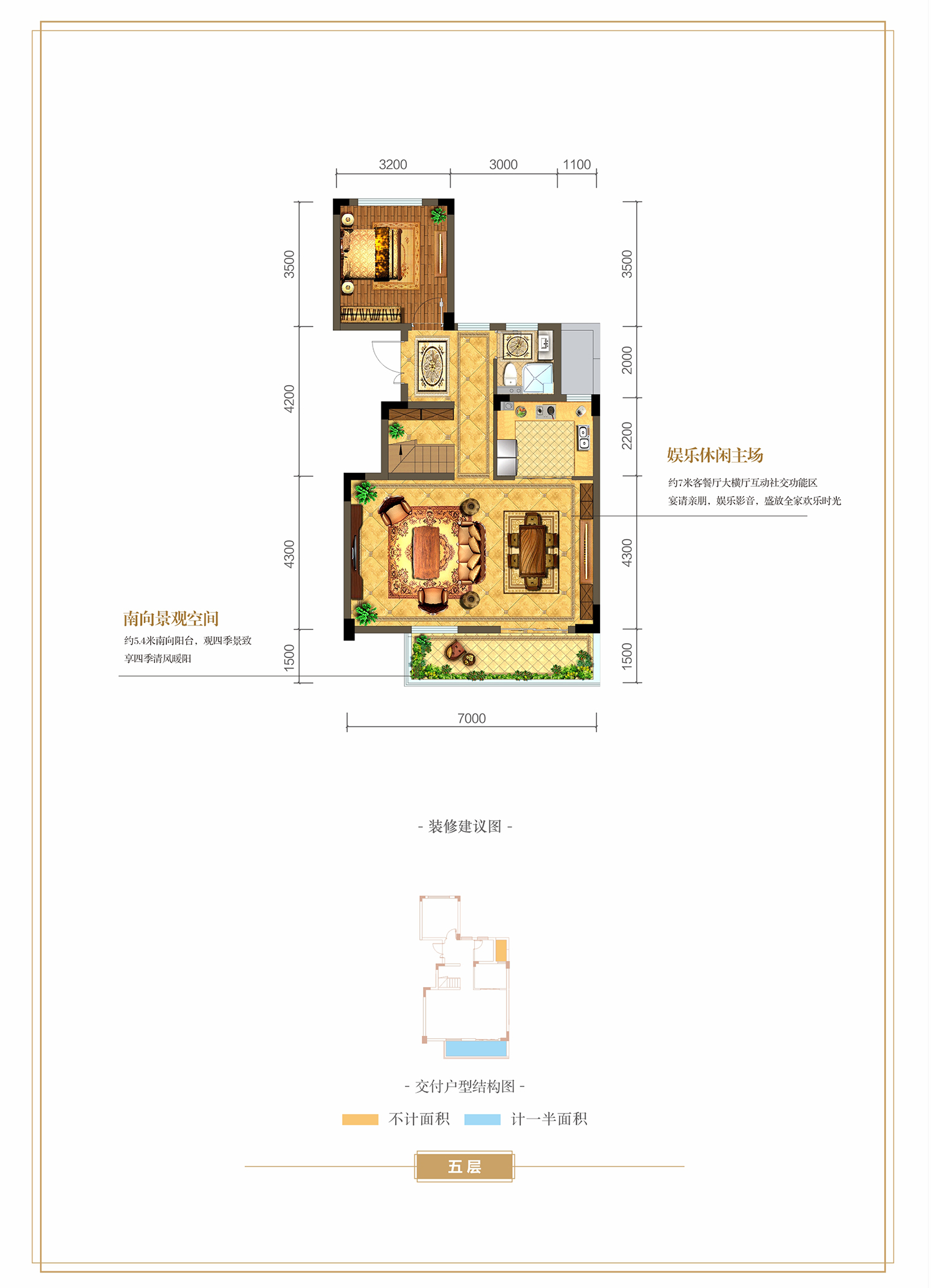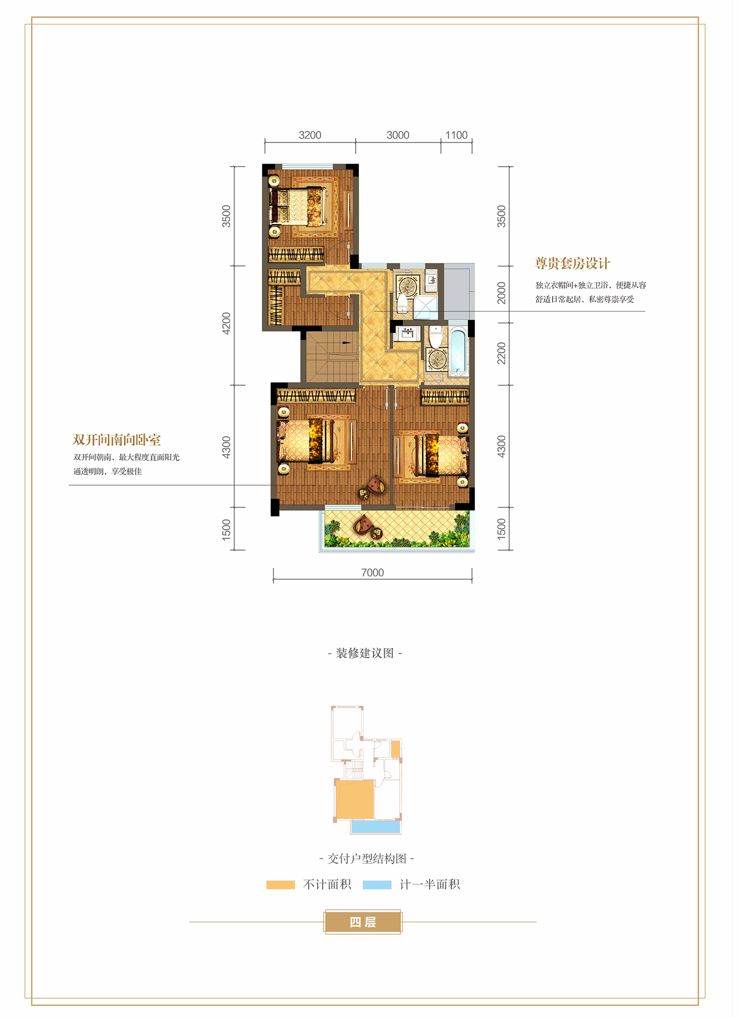 叠墅:现房销售,即买即办证,下叠建筑面积144㎡,赠送面积120-200㎡,使用面积高达264-344㎡;上叠建筑面积135㎡,赠送面积60-75㎡,使用面积高达195-210㎡。