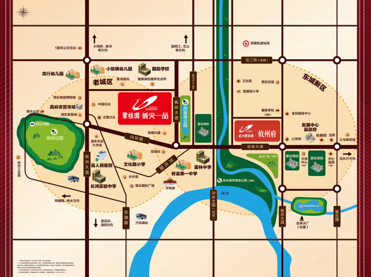 碧桂园城央一品是世界500强、中国地产三强碧桂园布局攸县的城中力作,项目位于攸县城区二环路与枫岭大道西南角(四亩湖公园旁),便捷享受老城区及东城新区双区配套。项目一路之隔即为四亩湖公园,经由攸州大道直达攸州公园,享一城绿肺。