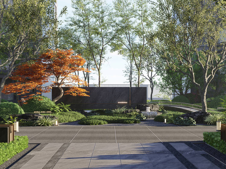④新加坡风格式内外双园林,市政绿化也要配得上旗滨玖玺。