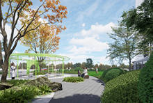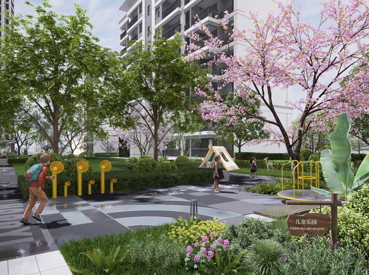 园林:百花园、儿童游乐天地、塑胶慢跑道