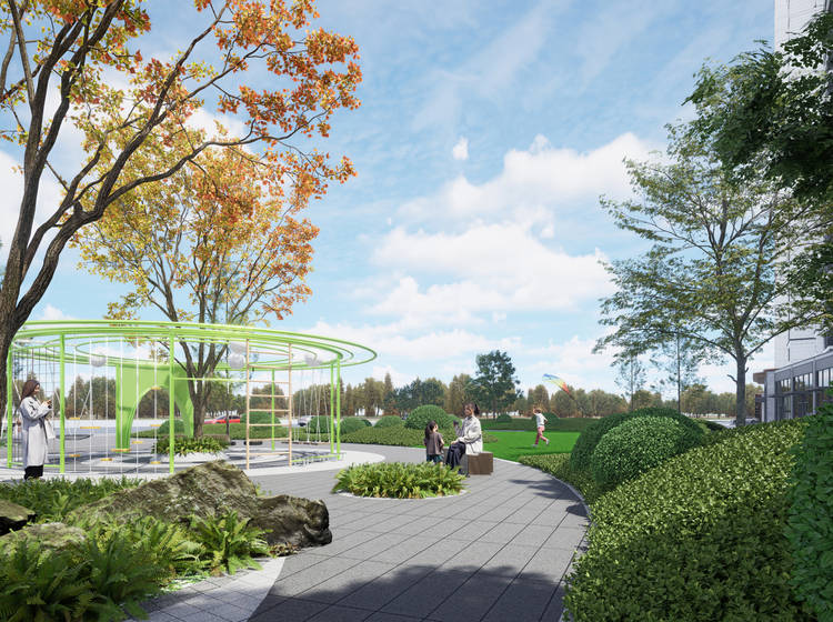 公园:项目自带4.8万方全冠移植园林;珊田广场;