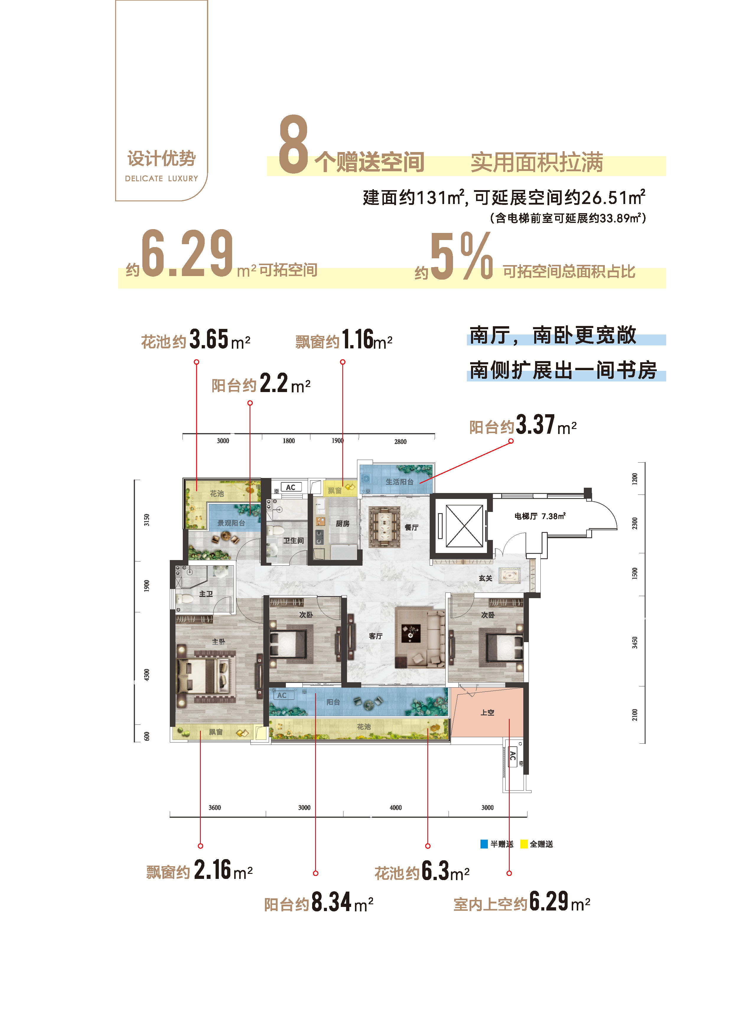 1、赠送空间: