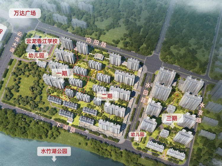 株洲香江悦府规划总建面约41万方湖居大盘,共分两期开发。一期容积率约1.8,绿化率高达35.5%,规划17F小高层、11F洋房、6F叠墅产品。二期以高层、洋房、复式洋房高低布局,产品均采用板楼设计,户户南北通透,多朝南开间、高得房、高赠送,铸就品质生活优居典范。