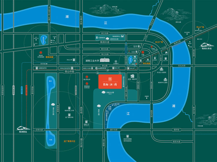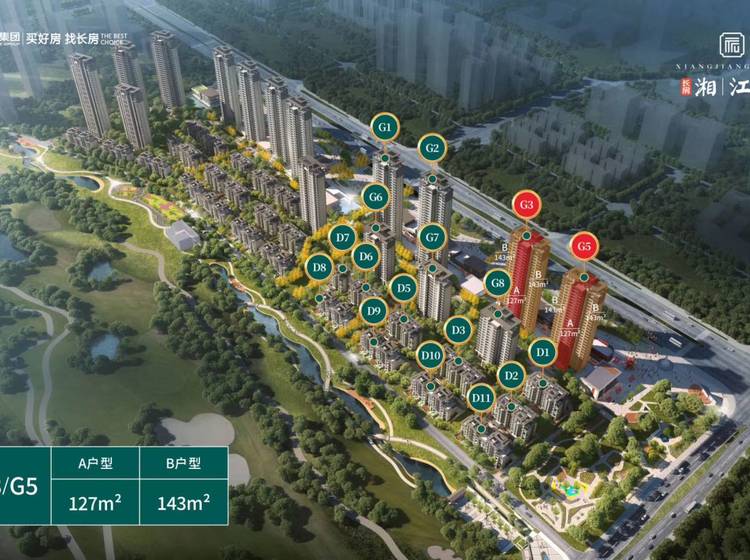 长房湘江府是湖湘品牌长房集团打造开发的株洲高端项目,位于天元南滨江低密生态区——衡山中路以南、湘水湾以北。项目以内部景观轴(示范区)、外部江景、浣溪沙公园及滨江南路风光带(如杜甫草堂、湘江商业街)五大生态核芯环绕布局,紧邻湘江,总建面约33万方、2.0低容积率,由高层和叠墅组成,产品建筑面积区间约为120~193㎡,多为2梯2户、2梯3户纯板式设计,配以长房集团旗下一级资质物业公司贴心服务。形成了“六纵六横”路网系统——衡山路、环线、株洲大道、黄河北路等市政主干道组成的多维立体交通,短时间内可直达神农城、工大商圈、株洲西站、中心医院等地。是株洲集经济文化生态医疗于一体的核芯发展区。