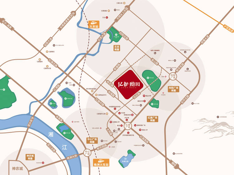 大润发超市、希尔顿酒店、株百红旗店、银泰商场、步步高超市、人民医院、荷塘公园、流芳公园