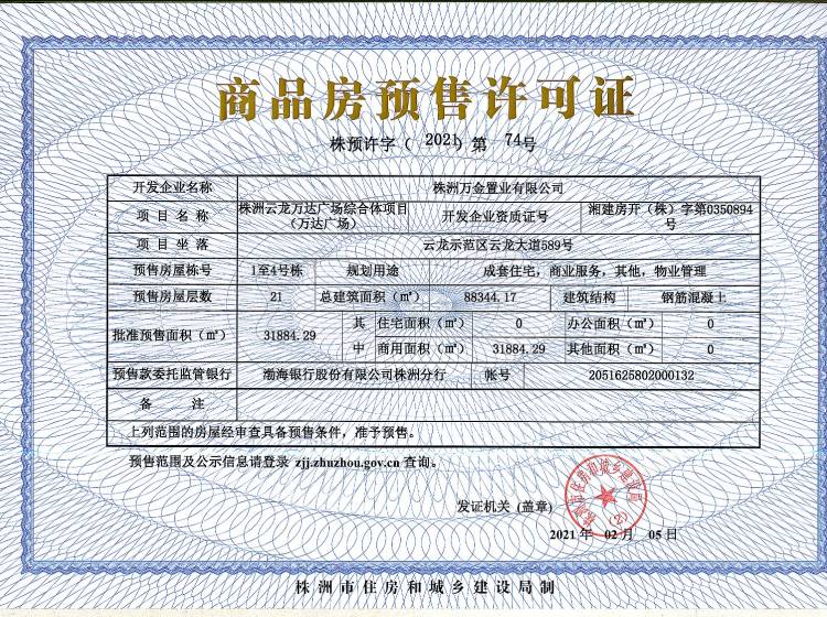 - 预许字(2021)第74号 详情发证时间 2021-02-05绑定楼栋云龙示范区云龙大道589号(五号地块)1至6号栋