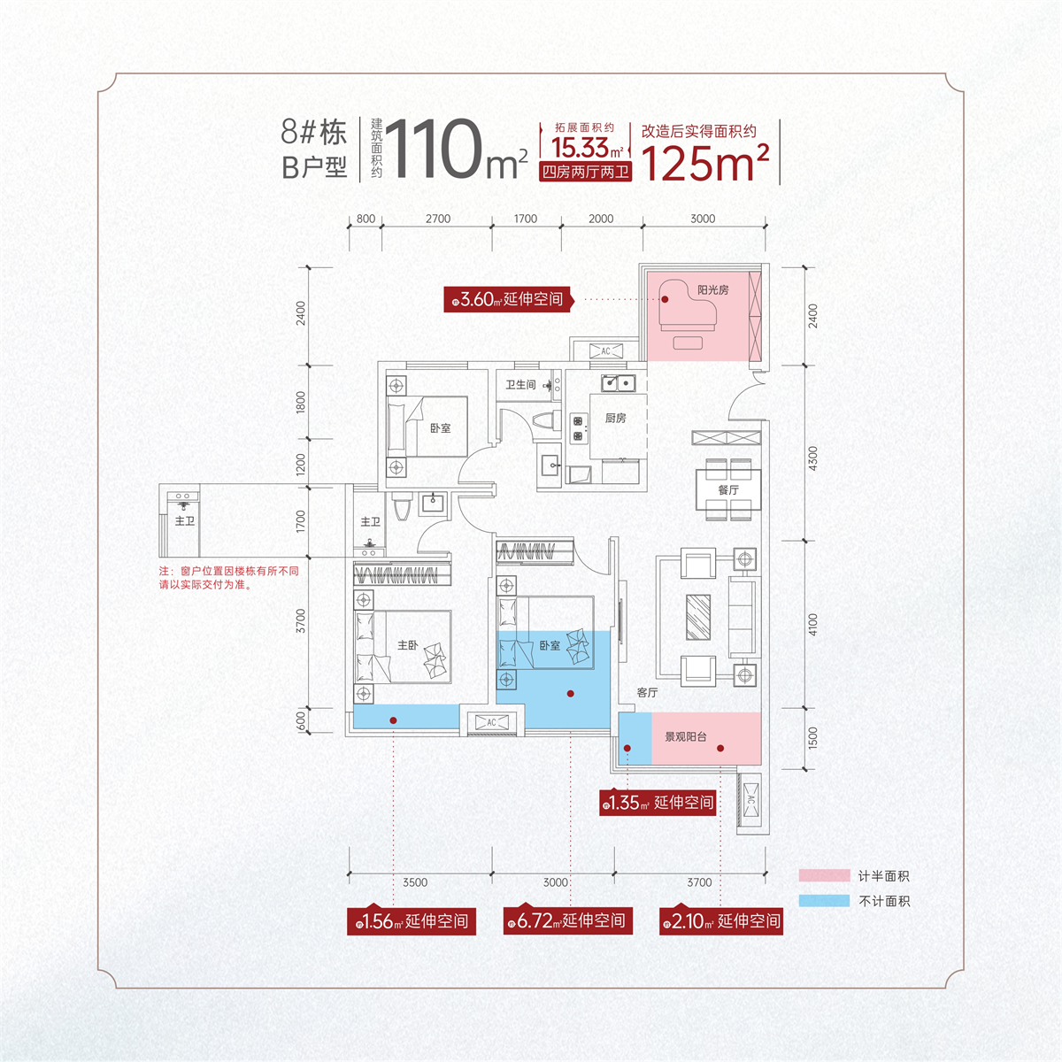 项目打造了株洲性价比赠送的户型,85㎡三房-132㎡四房,赠送面积超25㎡,得房率98%,更多拓展空间,更多生活想象。