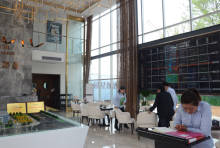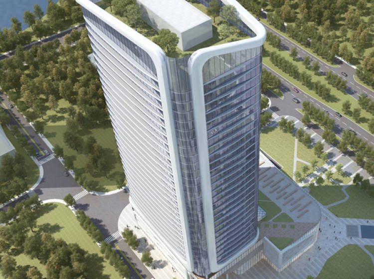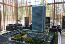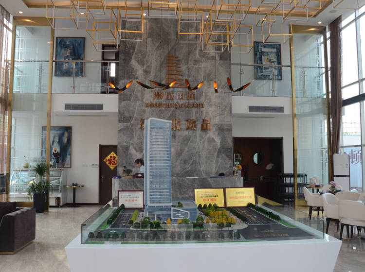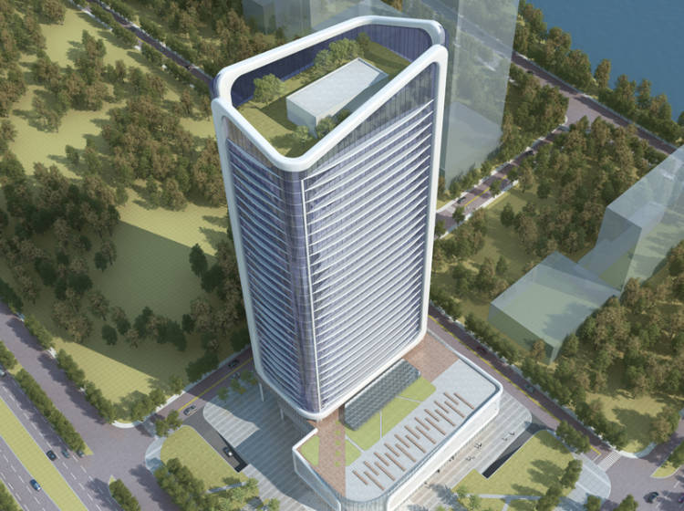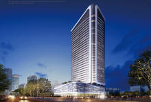 项目5-12层为希尔顿国际酒店,13层至32层为标准商务办公,层高4米,走廊宽2.4米,柱距8.4米,标准层面积为2377平方米,为框架式结构,空间可自由地组合分割 。