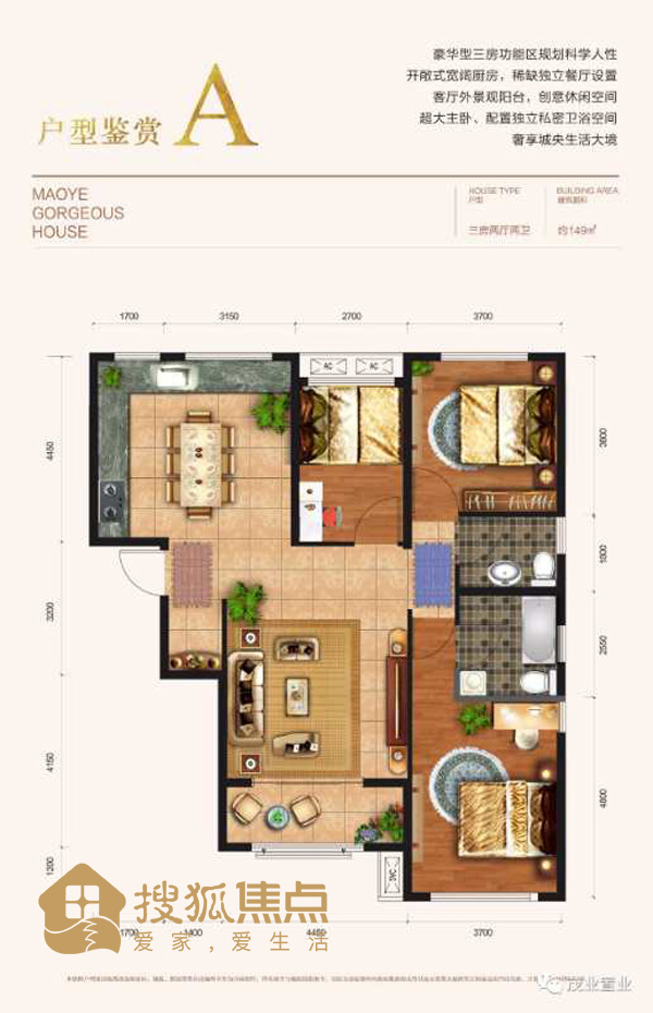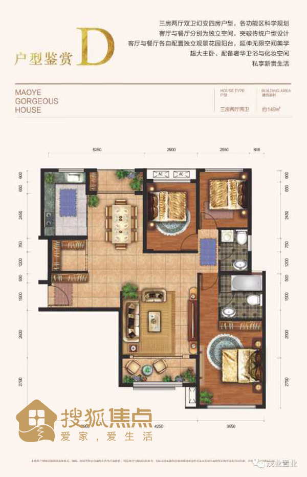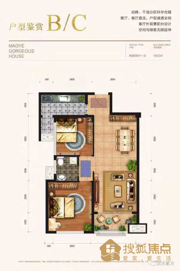 茂业华府户型区间92-149㎡,两居室与三居室户型图如下:
