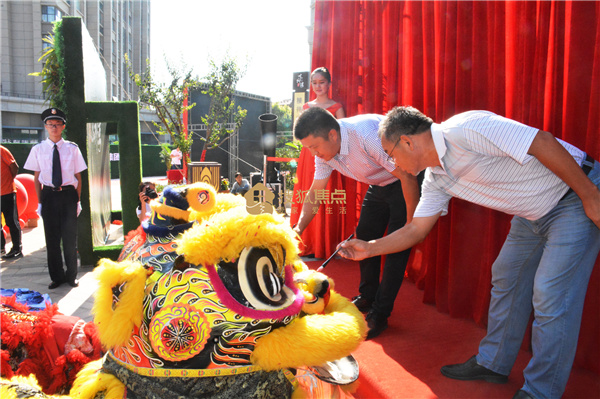 9时许,一段精彩的舞狮表演舞狮表演之后,山东金鼎智达集团副总经理尚伟、山东金鼎智达集团营销总监王应涛为金狮点睛,随后,金鼎·东柳湾营销中心正式启幕,一时间,礼炮齐鸣,彩带纷飞,气氛喜庆又热烈。