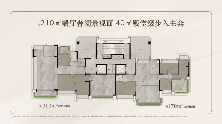 产品设计也尽显豪宅风范,全项目综合容积率仅3.3,其中南地块更是低至3.1,且做到全板楼,产品涵盖建面约140-170-210㎡户型。