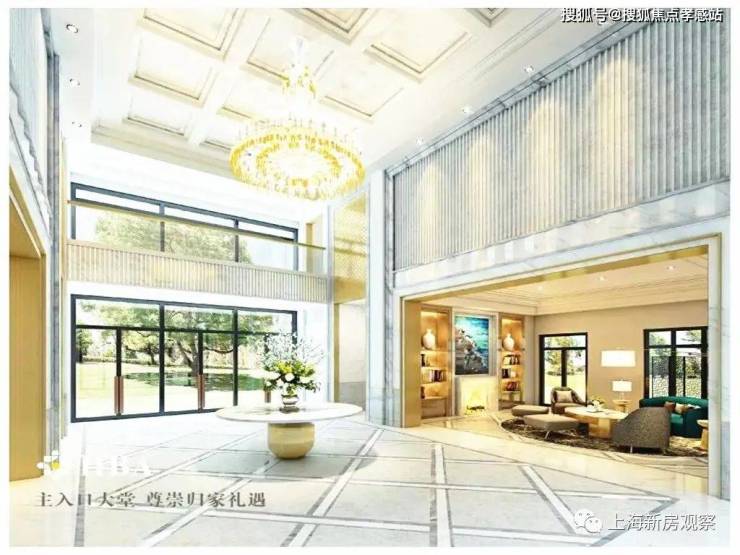 7米高入堂大厅。所有户型的厅、堂、卧室均采用落地观景窗,以保证充分采光及大面积景观视野。